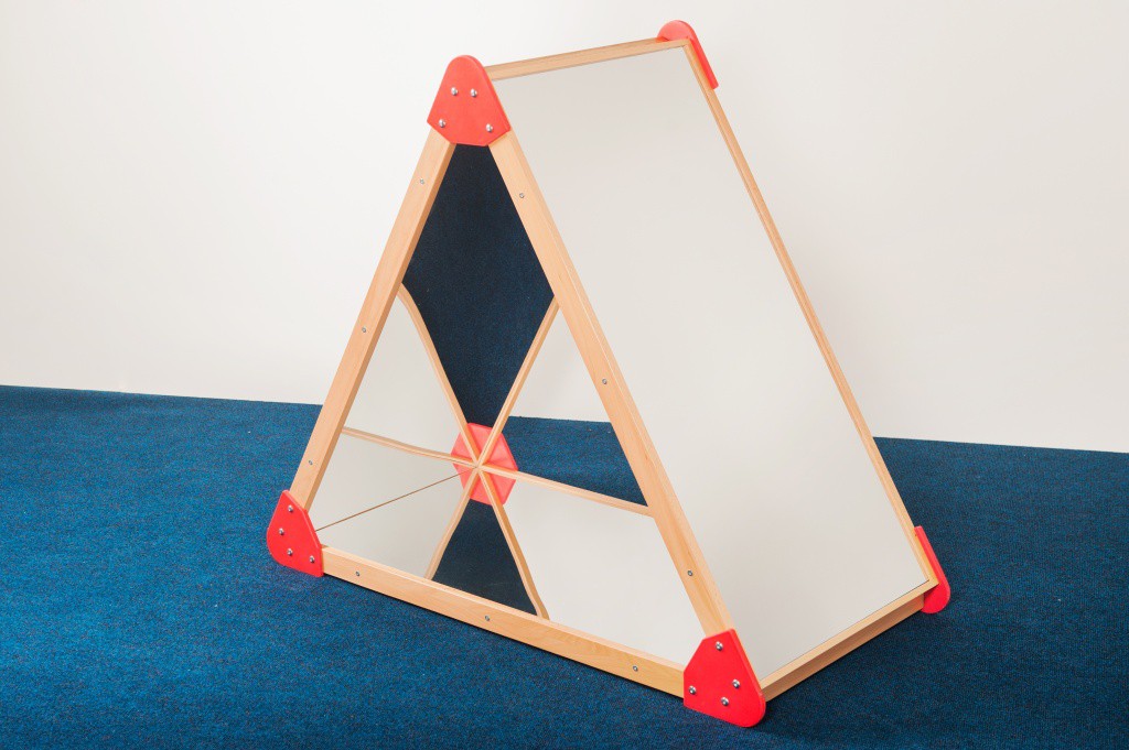 Дети с удовольствием будут играть с зеркальной пирамидой, рассматривая множество своих отражений или отражений любимых игрушек и различных предметов.