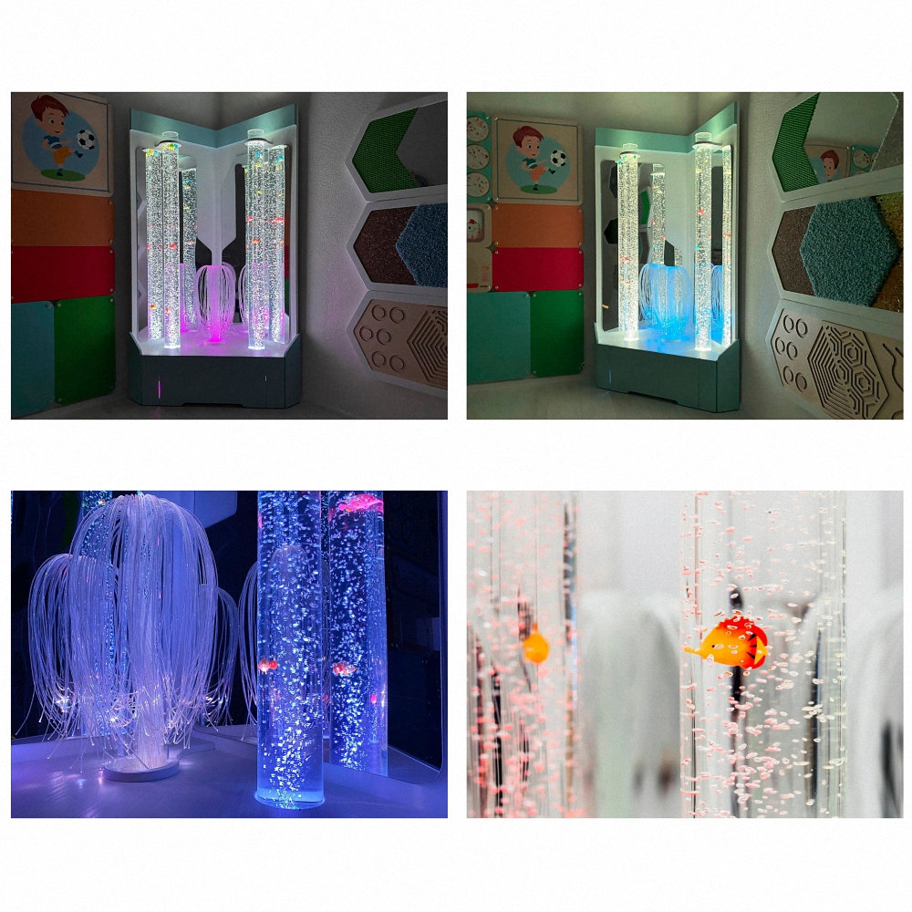 Воздушно-пузырьковая колонна для оформления комнат сенсорной разгрузки и кабинетов детских психологов. Помогает отключиться от эмоциональных переживаний и напряженного мыслительного процесса и окунуться в сенсорные ощущения.