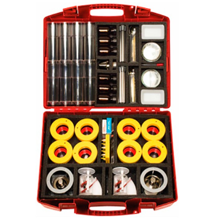В комплекте (для 2 рабочих групп)*: стакан, безмен, пробирки, тигель, емкость для проращивания, ложка, фильтр, двойная чашка, лупа, спиртовая горелка, мерный цилиндр, препаровальная игла, аксессуары