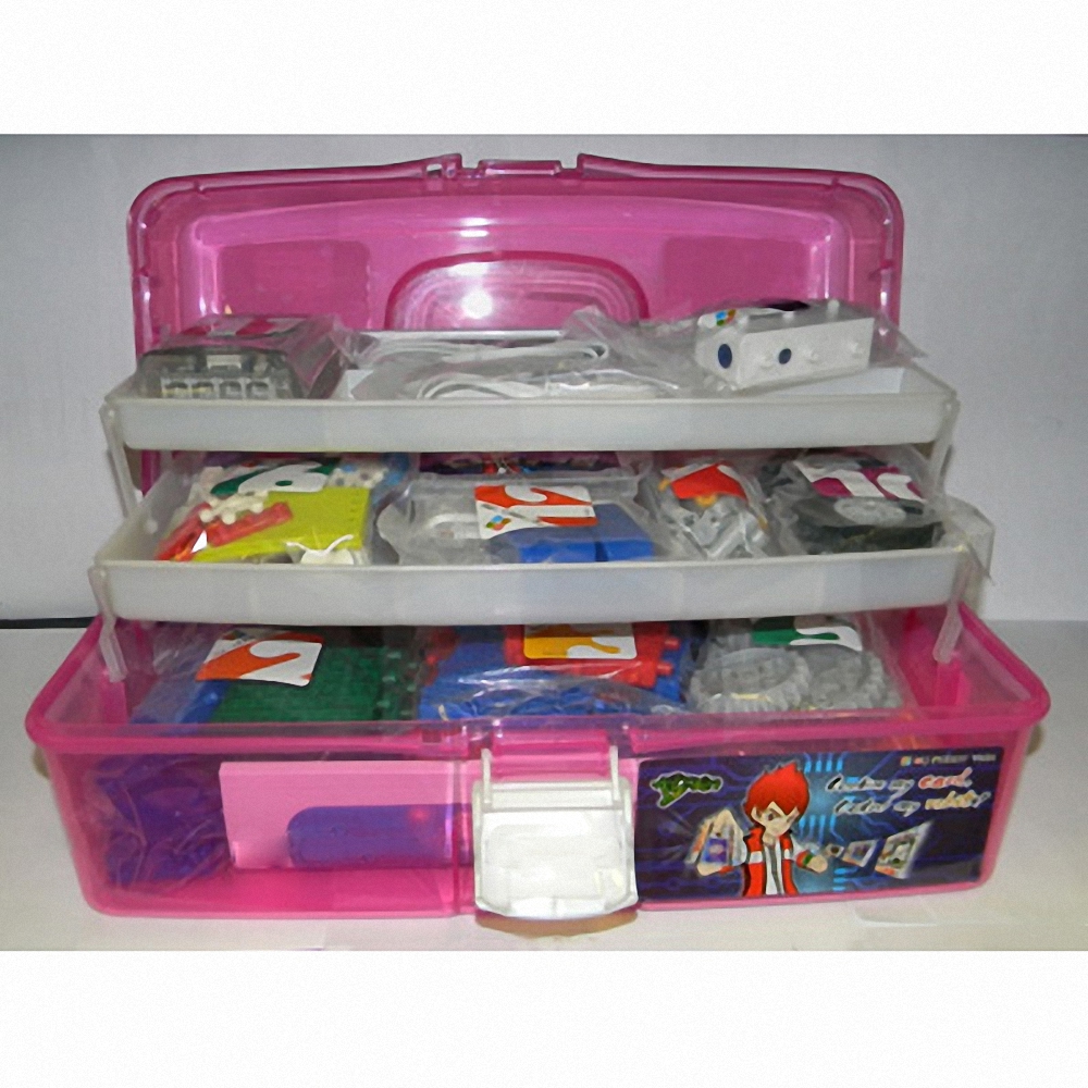 В составе набора имеются пластиковые детали, валы, шестерёнки и набор датчиков за исключением платы и картридера, которые используются из набора MRT Brain A. В набор входят не менее 125 элементов. Блоки изготовлены из ABS пластика 4 цветов: красный, синий, желтый, зеленый. Блоки можно соединять с 6 сторон. Толщина больших блоков - 12 мм. Диаметр входных отверстий на блоках - 6 мм и 4 мм, что позволяет: соединять большие блоки между собой, соединять их с деталями конструктора меньшего размера, использовать детали конструктора для детей с ослабленным зрением.