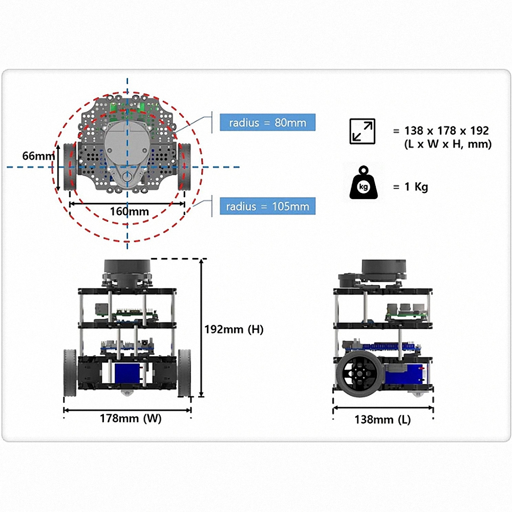 Компактные размеры ROBOTIS TurtleBot 3 Burger обеспечивают большую маневренность и проходимость.