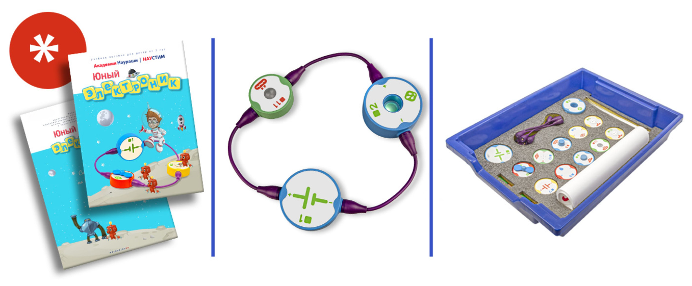 Набор знакомит ребёнка с понятиями электрического тока и электрических цепей.