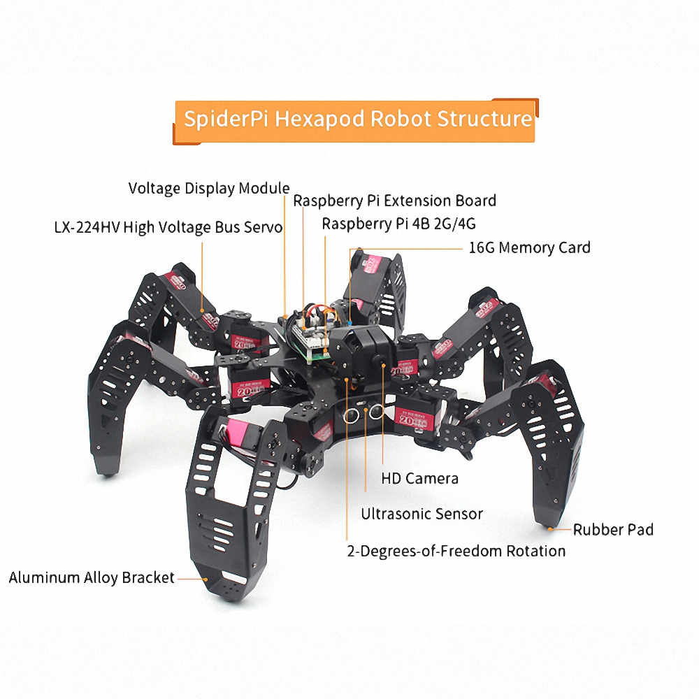 Оснащенный камерой 2DOF HD, SpiderPi может реализовывать интеллектуальные игры, такие как распознавание лиц и создание интеллектуального транспорта.
