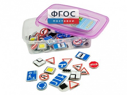Комплект тематических магнитов предназначен для моделирования на магнитно-маркерных досках различных дорожных ситуаций с учетом значений дорожных знаков и наглядной демонстрации обучающимся правил дорожного движения.