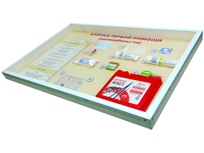 Стенд "Аптечка первой помощи (автомобильная)" (образцы под оргстеклом)