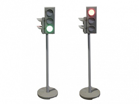 Модель светофоров выполнена в размерах, пропорционально уменьшенных относительно размеров, указанных в ГОСТе Р 52282-2004, с учетом антропометрических данных детей, обеспечивая хорошую видимость, правильное восприятие и удобство эксплуатации.