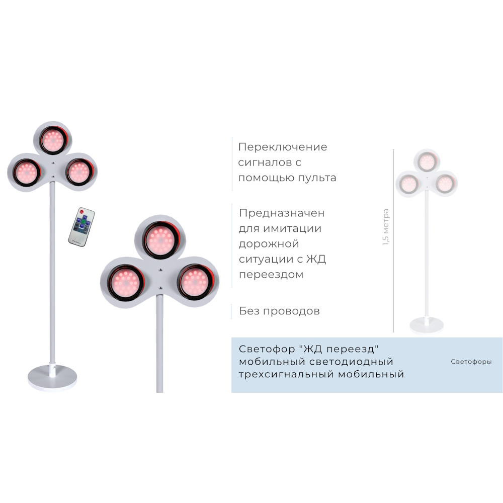 Главная Каталог Правила дорожного движения Оборудование для автогородка Светофор ЖД переезд мобильный светодиодный трехсигнальный