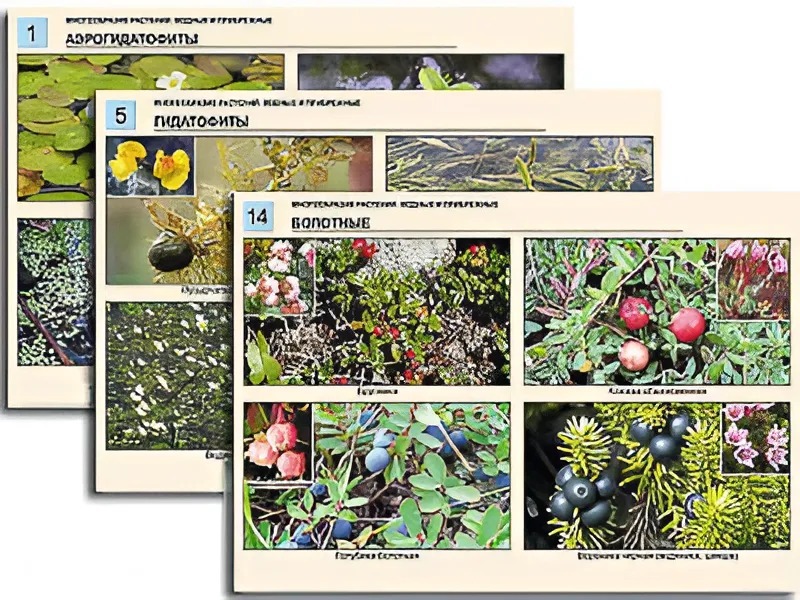 Комплект таблиц по ботанике раздаточных "Многообразие растений. Водные и прибрежные" (16 штук, А4, ламинированные)