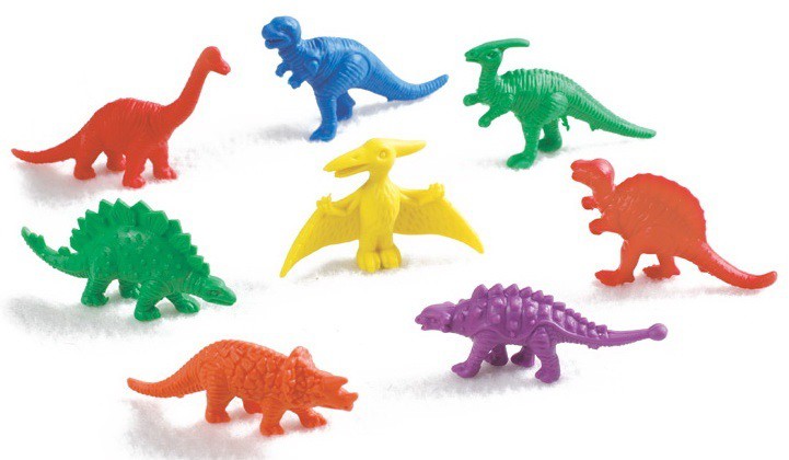 В наборе 128 фигурки динозавров 6 ярких цветов. Фигурки: брахиозавр,  стегозавр,  трицератопс,
