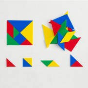 Головолмка, состоящая из плоских фигур, которые складывают определённым образом для получения другой, более сложной фигуры (изображающей человека, животное, предмет домашнего обихода, букву или цифру и т. д.).