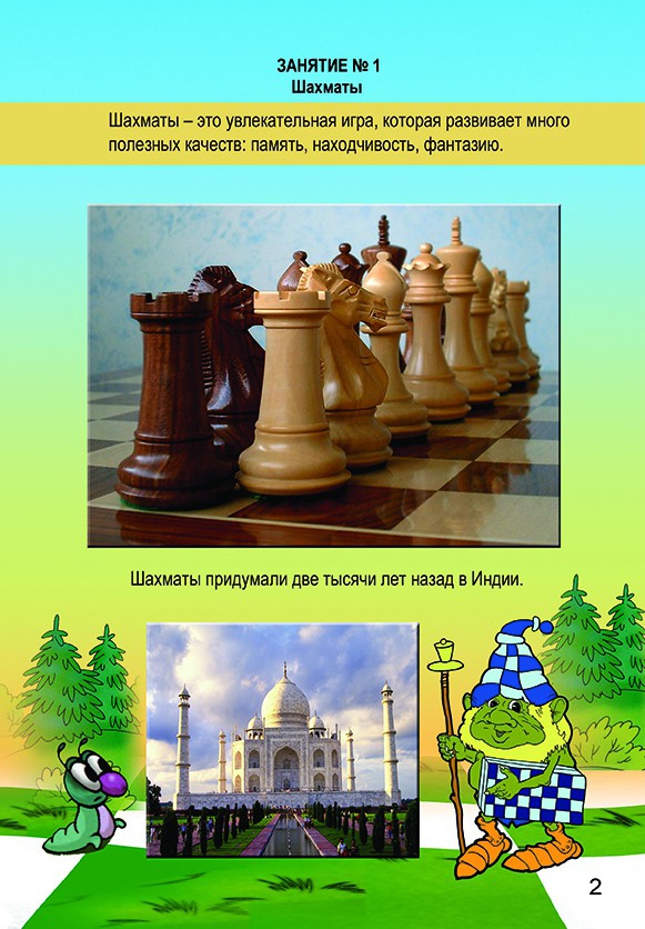Ребёнок может работать с учебным пособием даже без шахмат, рисуя ответы цвет- ными карандашами прямо в книге. Наш учебник поможет увлечь шахматами ребёнка и даст ему возможность сделать первый шаг во взрослую жизнь!