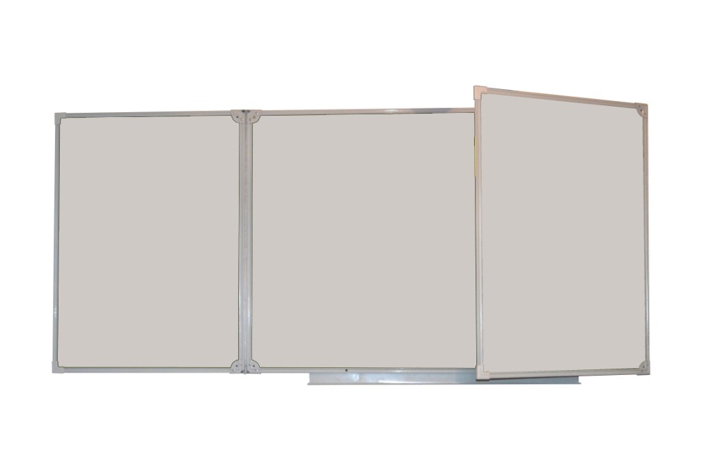 Доска школьная настенная 3-хэлементная для письма маркером, 5 рабочих поверхностей. В качестве рабочих полотен используются только высокопрочные материалы, специально предназначенные для школьных досок.