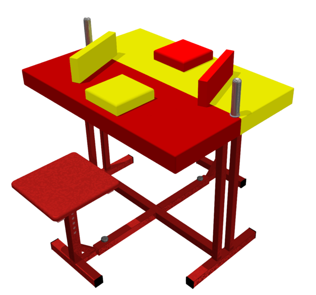 Конструкция предусматривает возможность перестановки подлокотников и подушек, что позволяет осуществлять борьбу как правой, так и левой рукой. Сиденье регулируется по высоте и ширине.