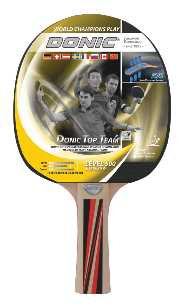 Одобренная ITTF (Международной федерацией настольного тенниса) накладка с губкой толщиной 1,7 мм, пятислойное основание , коническая ручка с технологией гашения вибрации.