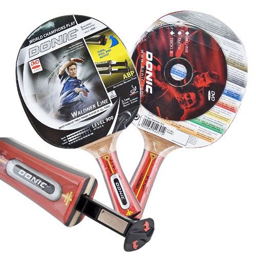Одобренная ITTF накладка с губкой толщиной 2,1 мм, пятислойное основание, DVD, коническая ручка с системой ABP (система изменения баланса при помощи перемещения металлической вкладки внутри ручки).