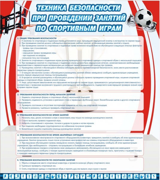 Стенд "Техника безопасности занятий по спортивным играм" - fgospostavki.ru - Белово