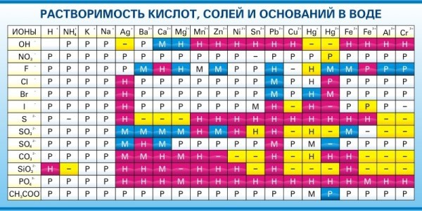 Стенд "Растворимость кислот, солей и оснований в воде (краткая)"