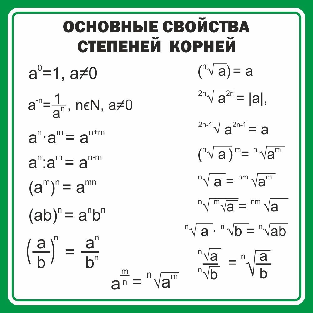 Стенд "Основные свойства степеней корней"