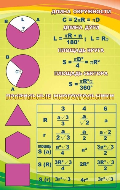 Прекрасная подача темы, связанной с правильными многоугольниками. Стенд яркий и приятный на вид. А все необходимые фигуры, выделены сильнее прочего на этом стенде. Дана табличка, которая относится к правильным многоугольникам. И, безусловно, с наличием данной таблицы, тему изучать, не только проще, но и приятнее. Собственно, ничего необыкновенного, так как стенд не приходил с другой планеты, образно говоря. Но явно на такой «нарядный» стенд, ученикам глядеть будет приятнее. Значит и нужные сведения, запомнят они с большей охотой. А учителям останется, только лишь удивляться отличным отметкам в журнале.