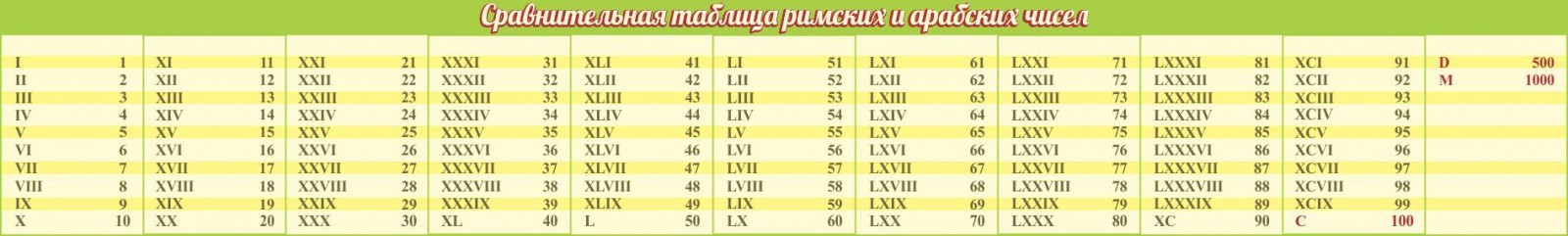 Главная Каталог Стенды Кабинеты Математика Стенд "Сравнительная таблица римских и арабских чисел"