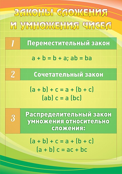 Главная Каталог Стенды Кабинеты Математика Стенд "Законы сложения и умножения чисел"