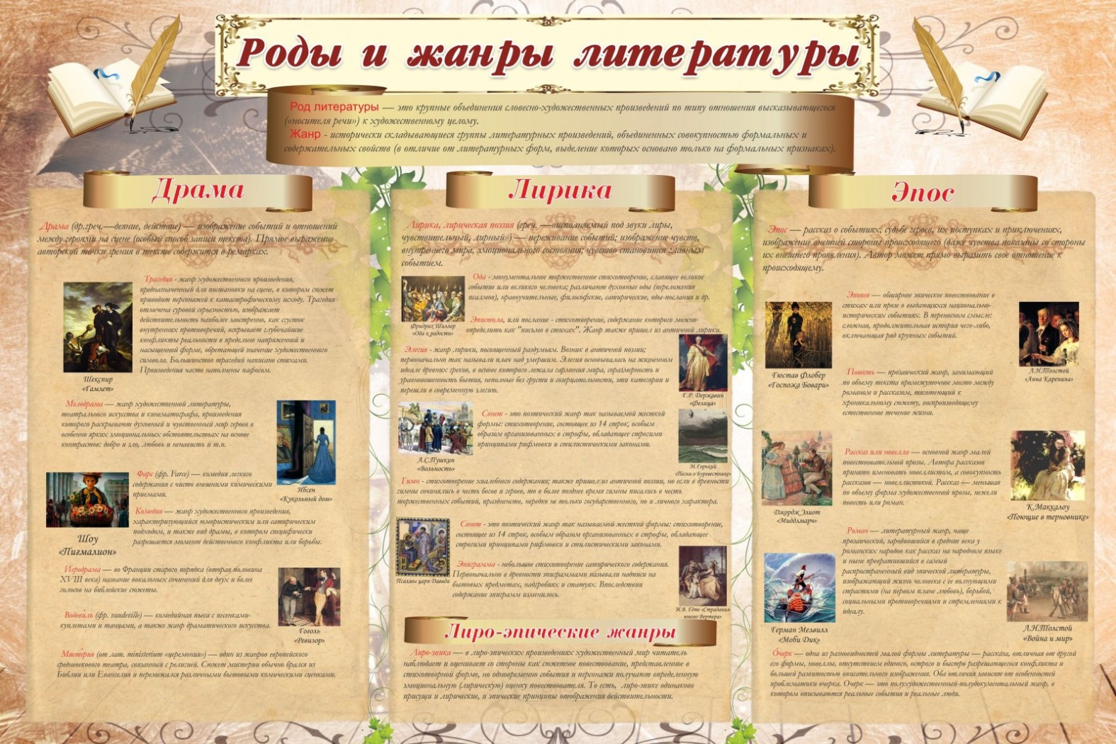 Стенд "Роды и жанры литературы" - fgospostavki.ru - Белово