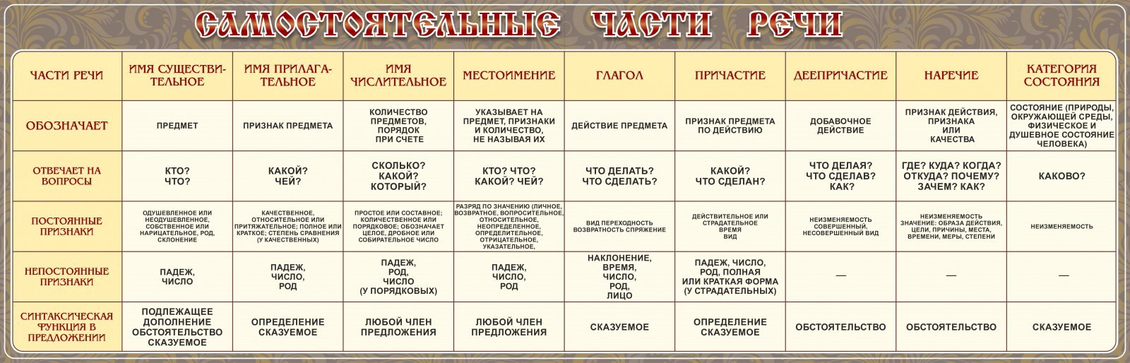 Главная Каталог Стенды Кабинеты Русский язык и литература Стенд "Самостоятельные части речи" Вариант 1