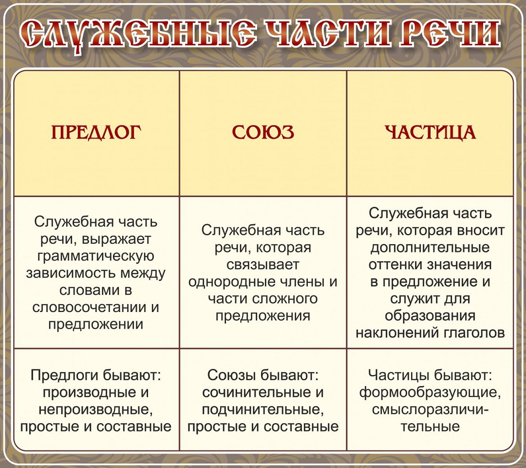 Стенд "Служебные части речи"