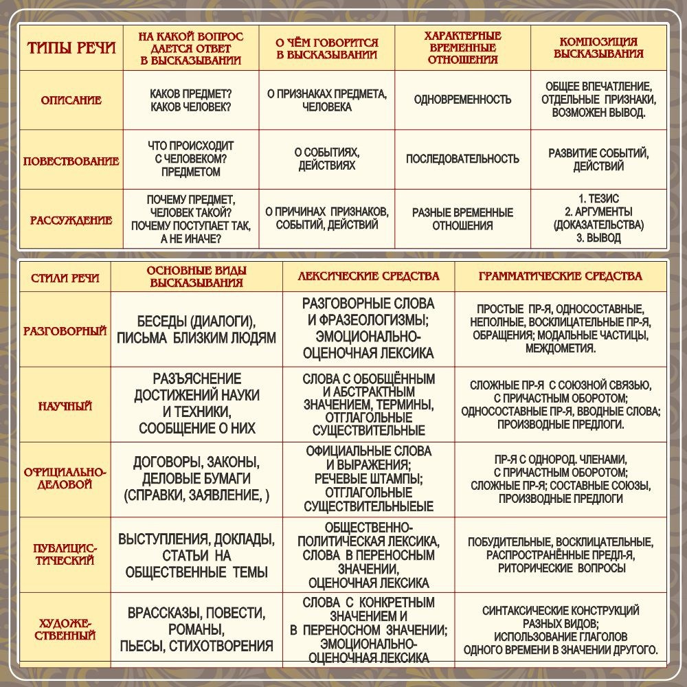 Стенд "Типы и стили речи"