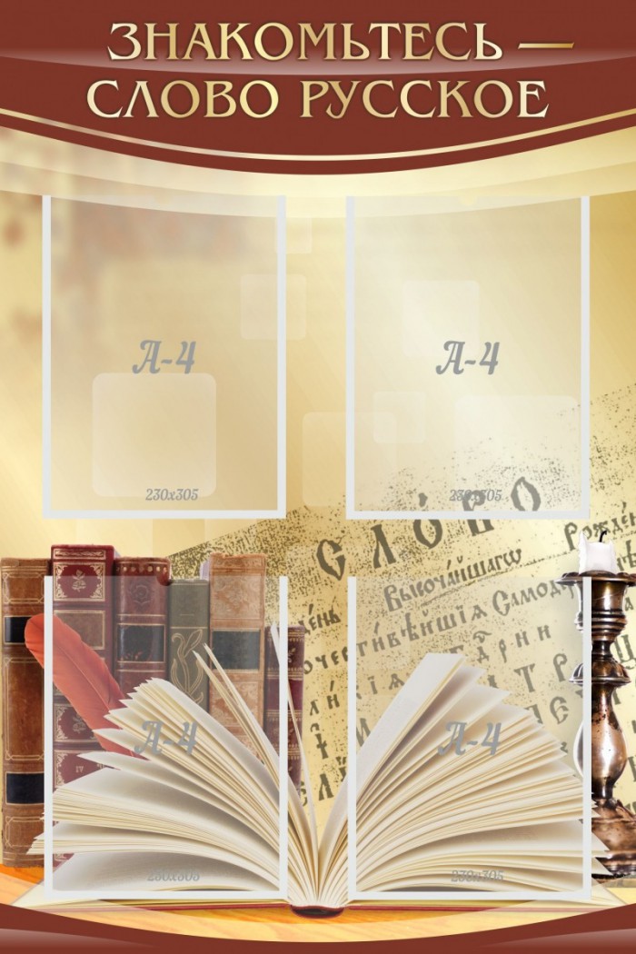 Богатый русский язык имеет различные правила и исключения, которые следует знать каждому учащемуся школы. Но чтобы выучить все, уходит много времени, поэтому то и важно, чтобы школьник мог самостоятельно использовать дополнительные материалы, тем самым вырабатывая свое упорство и самостоятельность. Для этого был специально разработан стенд «Знакомьтесь — русское слово», имеющий четыре небольших кармана для необходимой информации, что позволяет использовать их для материала, который хочется выделить из общей школьной программы для более углубленного изучения учащимися.