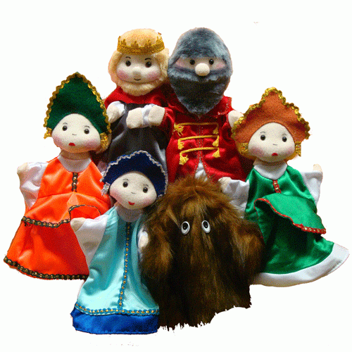 Набор состоит из 6 перчаточных кукол: Настенька, Князь,Чудовище, Купец, Гордея, Любава.