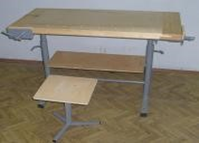 Верстак столярный  учебный Вст-У-Пр с пружинной регулировкой подъема столешницы, с полкой, в комплекте с табуретом