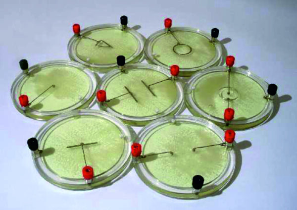 Набор предназначен для демонстрации конфигурации силовых линий, которые создаются проводниками разной формы. Набор состоит из 7 закрытых прозрачных кювет, в которых находится по одному или несколько электродов. Данный комплект может использоваться в следующих разделах электростатики: