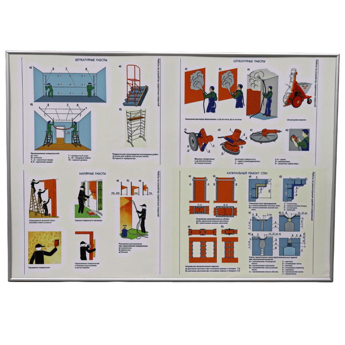 Учебно-лабораторный комплект (комплекс) «Штукатурные работы» предназначен для наглядной демонстрации этапов подготовки стен, нанесение штукатурных смесей различными способами, финишной отделки стен.