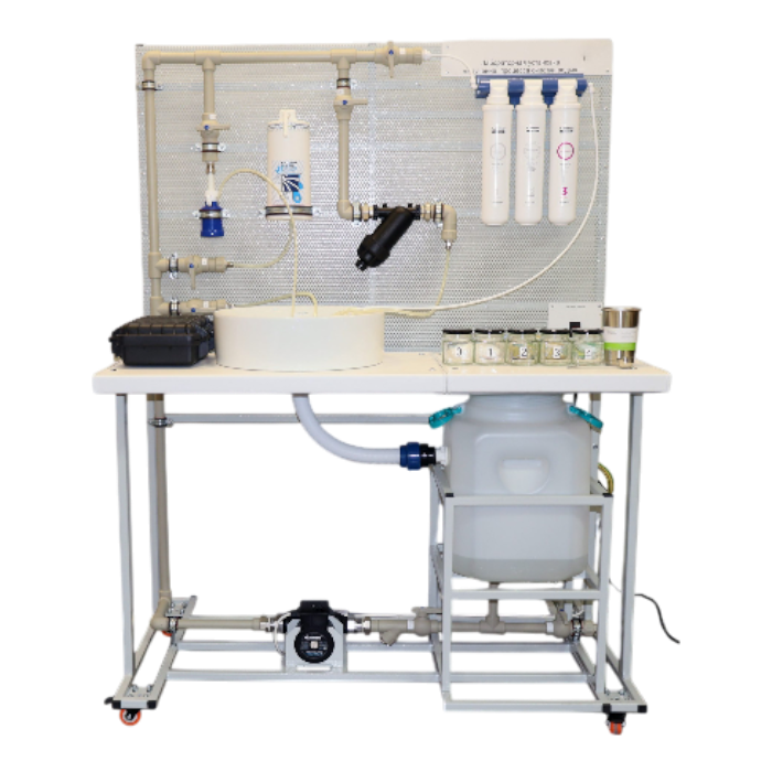 Лабораторная установка позволяет проводить эксперименты с различными видами очистки воды, сравнивать эффективность фильтров, а также изучать влияние различных параметров на процесс очистки. Это оборудование поможет студентам получить практические навыки в области очистки воды, что может быть очень полезным для их будущей карьеры в области экологии, гидрологии и других наук, связанных с охраной окружающей среды.