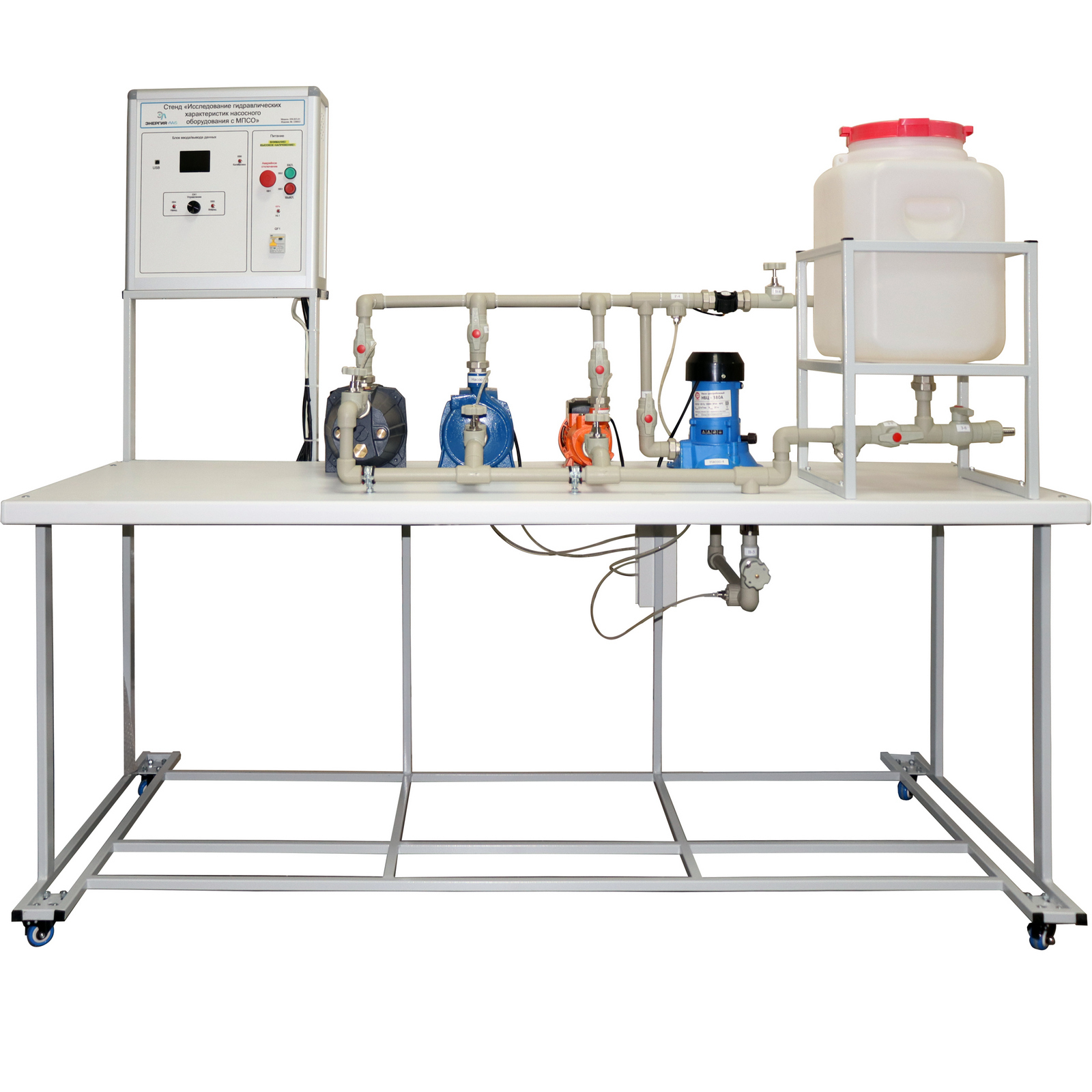 Стенд «Исследование гидравлических характеристик насосного оборудования с МПСО» предназначен для проведения лабораторно – практических занятий по изучению насосного оборудования, способов контроля параметров в системе водоснабжения, определение гидравлических характеристик насосного оборудования для студентов технических специальностей.