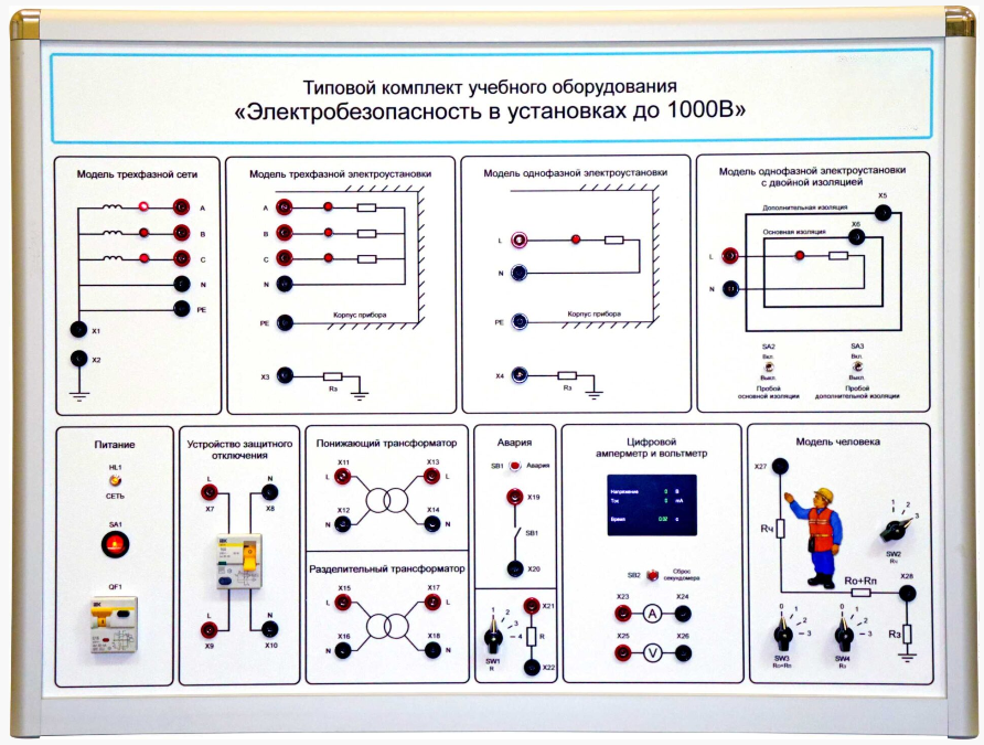 Комплект учебного лабораторного оборудования «Электробезопасность в установках до 1000 В» предназначен для проведения лабораторно-практических занятий в учреждениях начального профессионального, среднего профессионального и высшего профессионального образования, для получения базовых и углубленных профессиональных знаний и навыков.