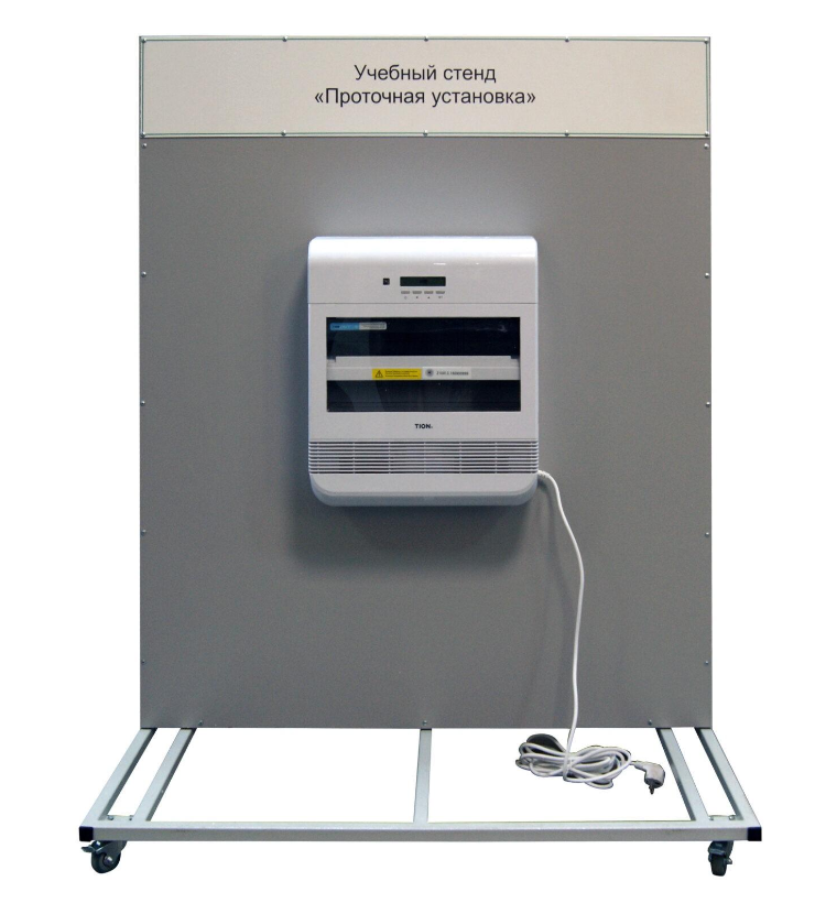 Лабораторный стенд «Проточная установка» предназначен для ознакомления с устройством, особенностями монтажа и эксплуатации проточных установок очистки воздуха.