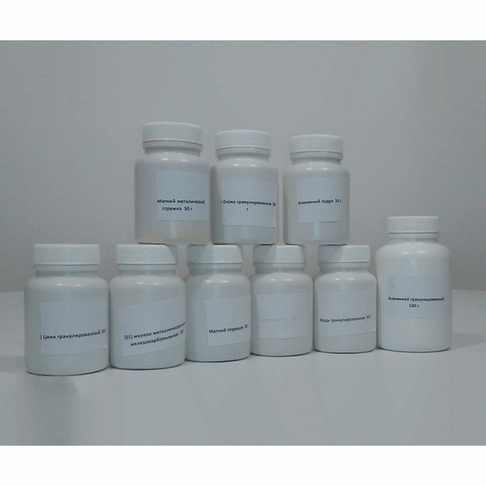 Набор 5 ОС Металлы (малый) предназначен для выполнения демонстрационных, лабораторных опытов и практических работ в рамках изучения курса химии. Представляет собой комплект готовых для использования в условиях учебной лаборатории реактивов, в котором представлены металлы в виде порошка, стружки, гранул. Применяется для: