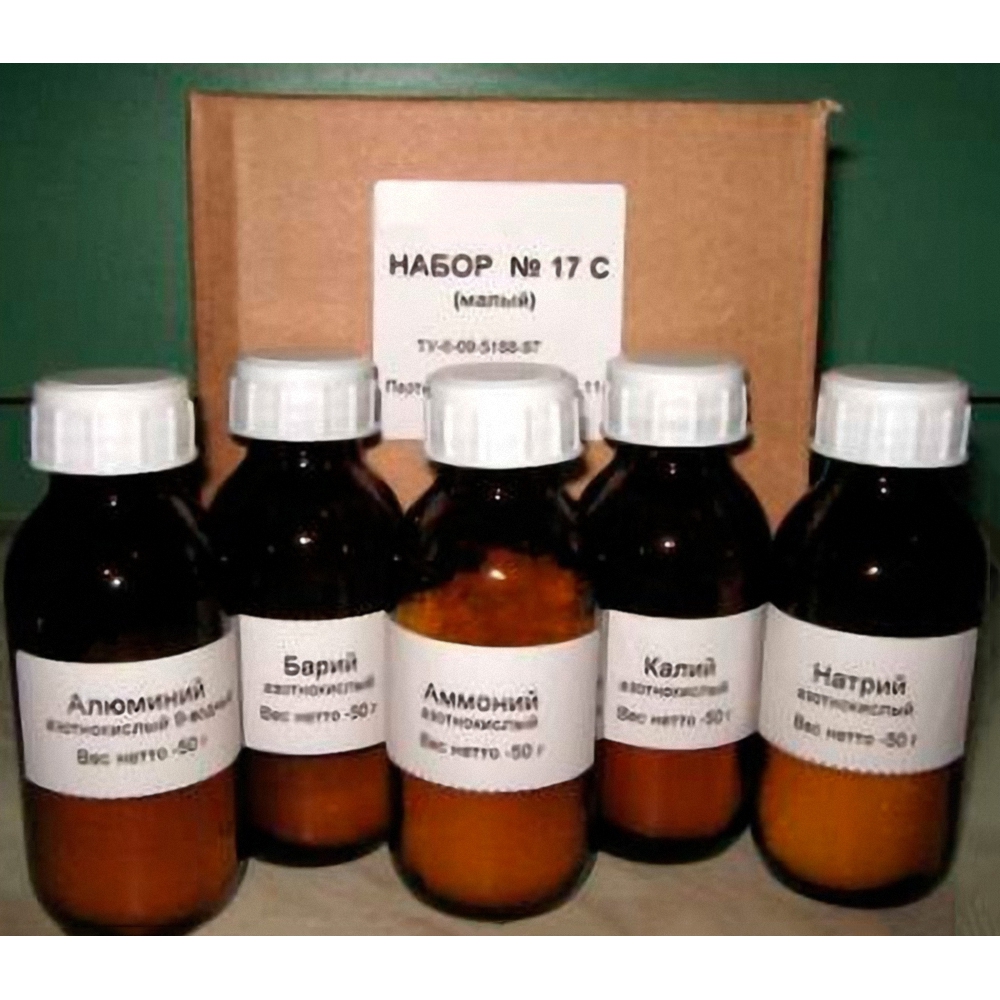 Набор 17 ВС Нитраты (без серебра) предназначен для выполнения демонстрационных, лабораторных опытов и практических работ в рамках изучения курса химии.