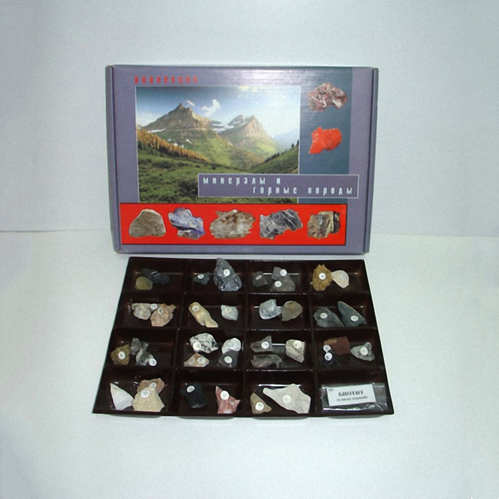 Коллекция "Минералы и горные породы" (40 видов) предназначена для использования в общеобразовательных учреждениях, в качестве демонстрационного материала на уроках химии, географии, естествознания и для кружковой работы.
