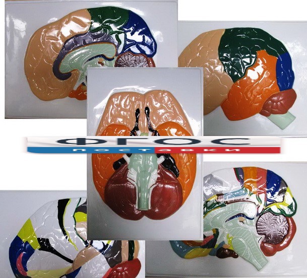 Модель барельефная "Доли, извилины, цитоархитектонические поля головного мозга" (5 планшетов) - fgospostavki.ru - Белово