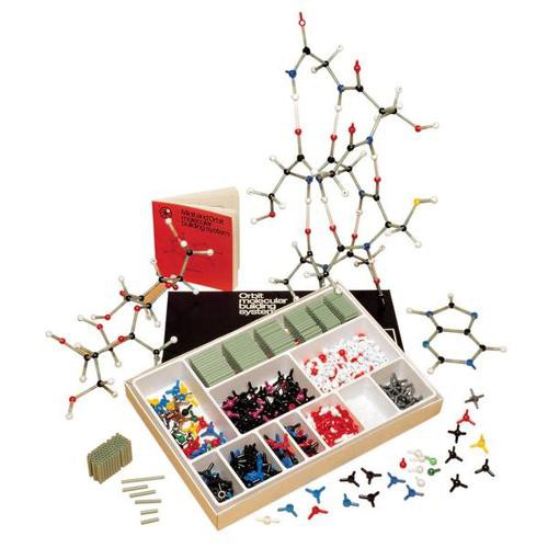 Данный набор включает 390 узловых атомов. Масштаб: 3 см = 100 пм. Узловые атомы окрашены в разные цвета, в зависимости от элемента, который они представляют. Также отмечены углы между связями. Соединение между атомами осуществляется при помощи пластиковых трубочек, которые нарезаются на отрезки нужной длины. В набор входят следующие компоненты: аминокислоты, моносахариды, глицерин, жирные кислоты, стероиды, пурины и пиримидины, пептиды, дисахариды, липиды, нуклеозиды, нуклеотиды, протеины, полисахариды, нуклеиновые кислоты.